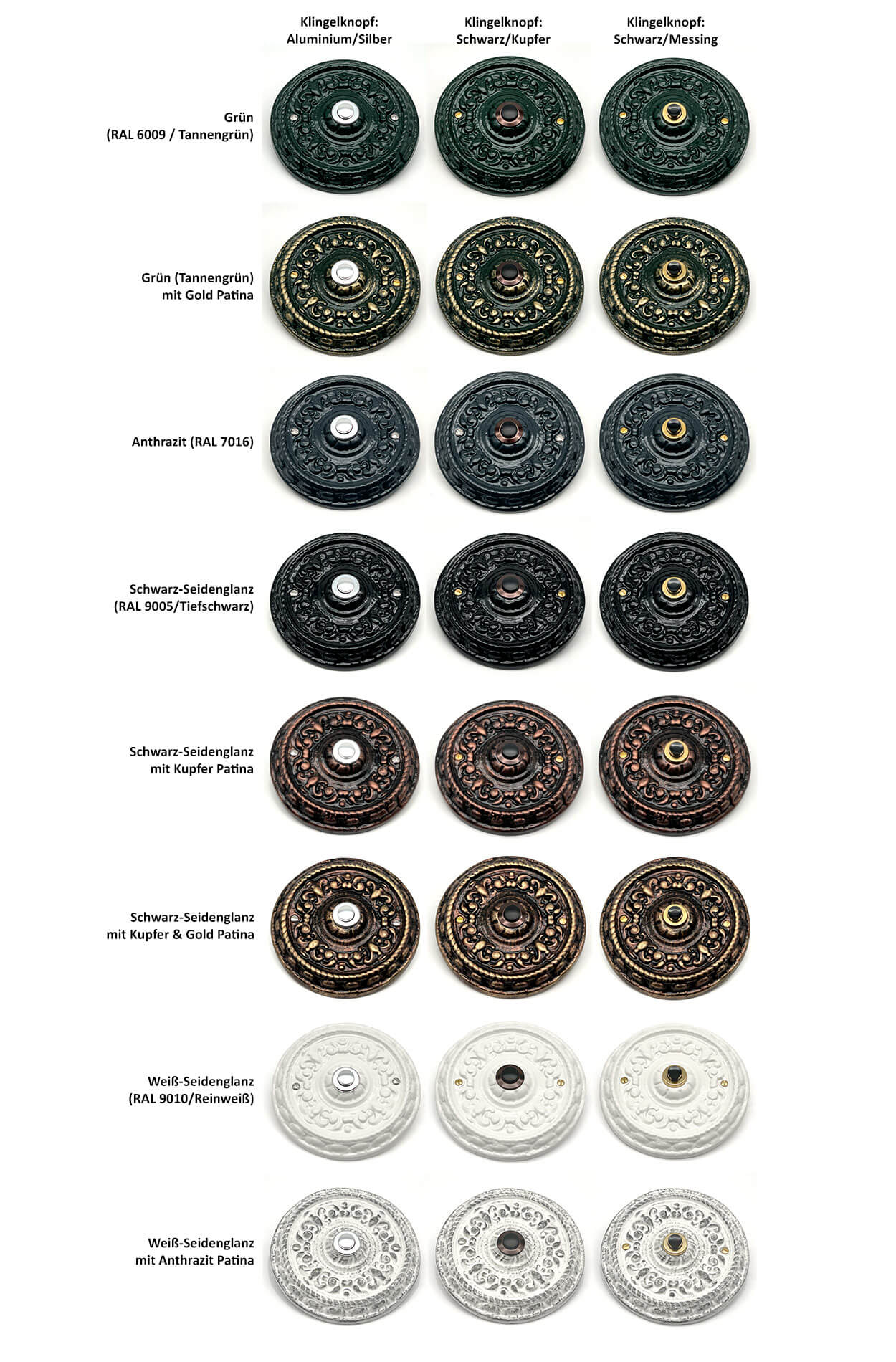 Die Lackierung und Patina können Sie entsprechend unserer Farbenliste auswählen, Sonderlackierungen und individuelle Patinierungen bieten auf Anfrage an.