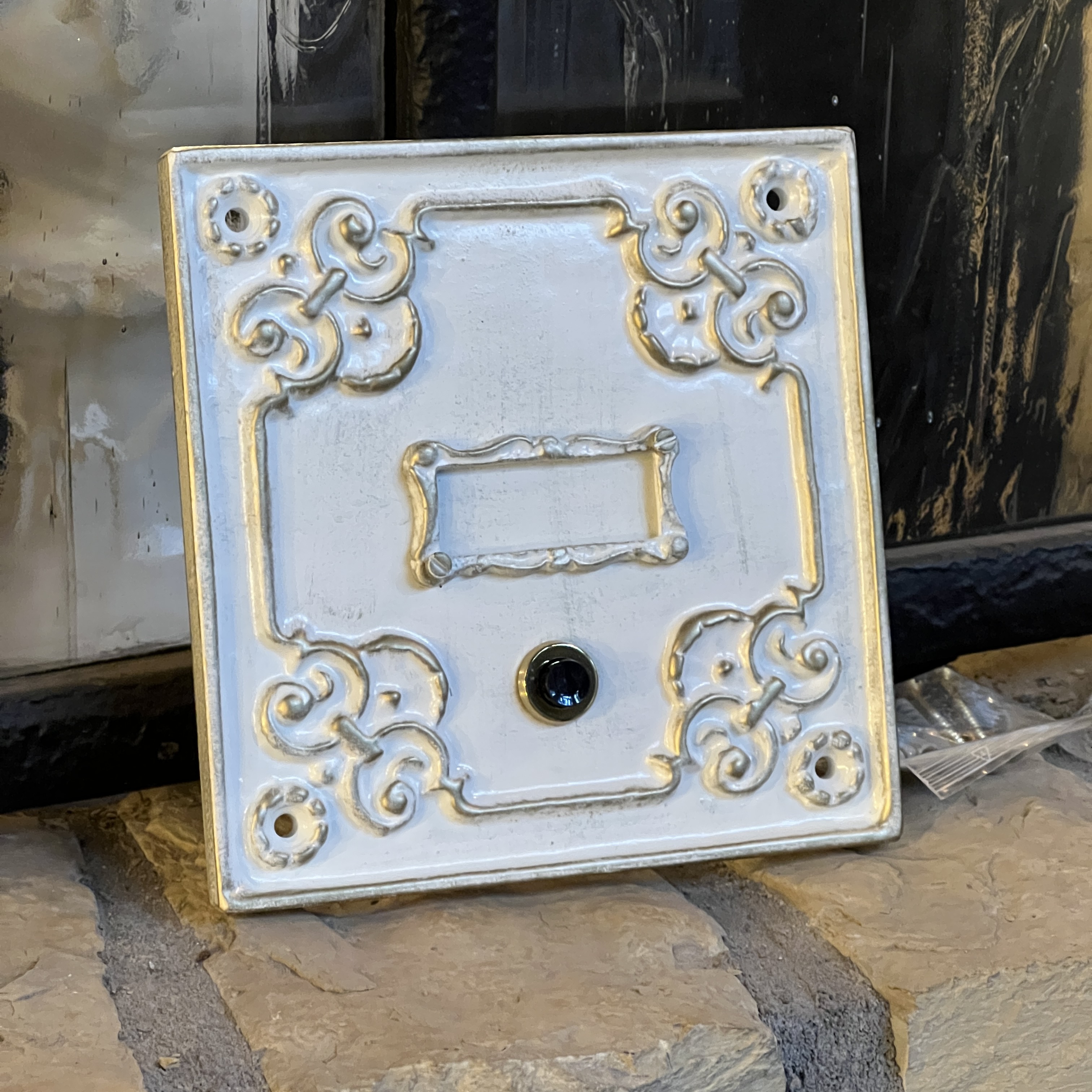 Ausführung in Schwarz-Antik (Schmiedeeisen-Effekt) mit klarem Glas.